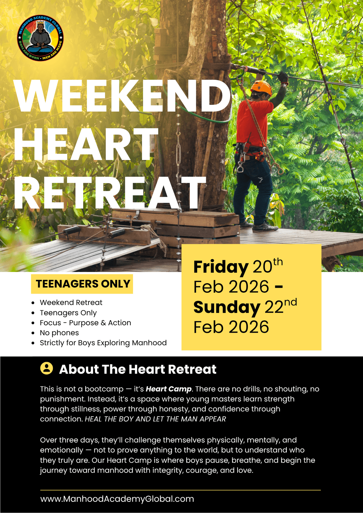 At MAG, we host something rare and deeply needed — weekend Heart Retreats for boys. These retreats are sacred spaces where young masters step away from the noise of the world and turn inward. Over a few days, they reconnect with nature, their emotions, and their sense of purpose.